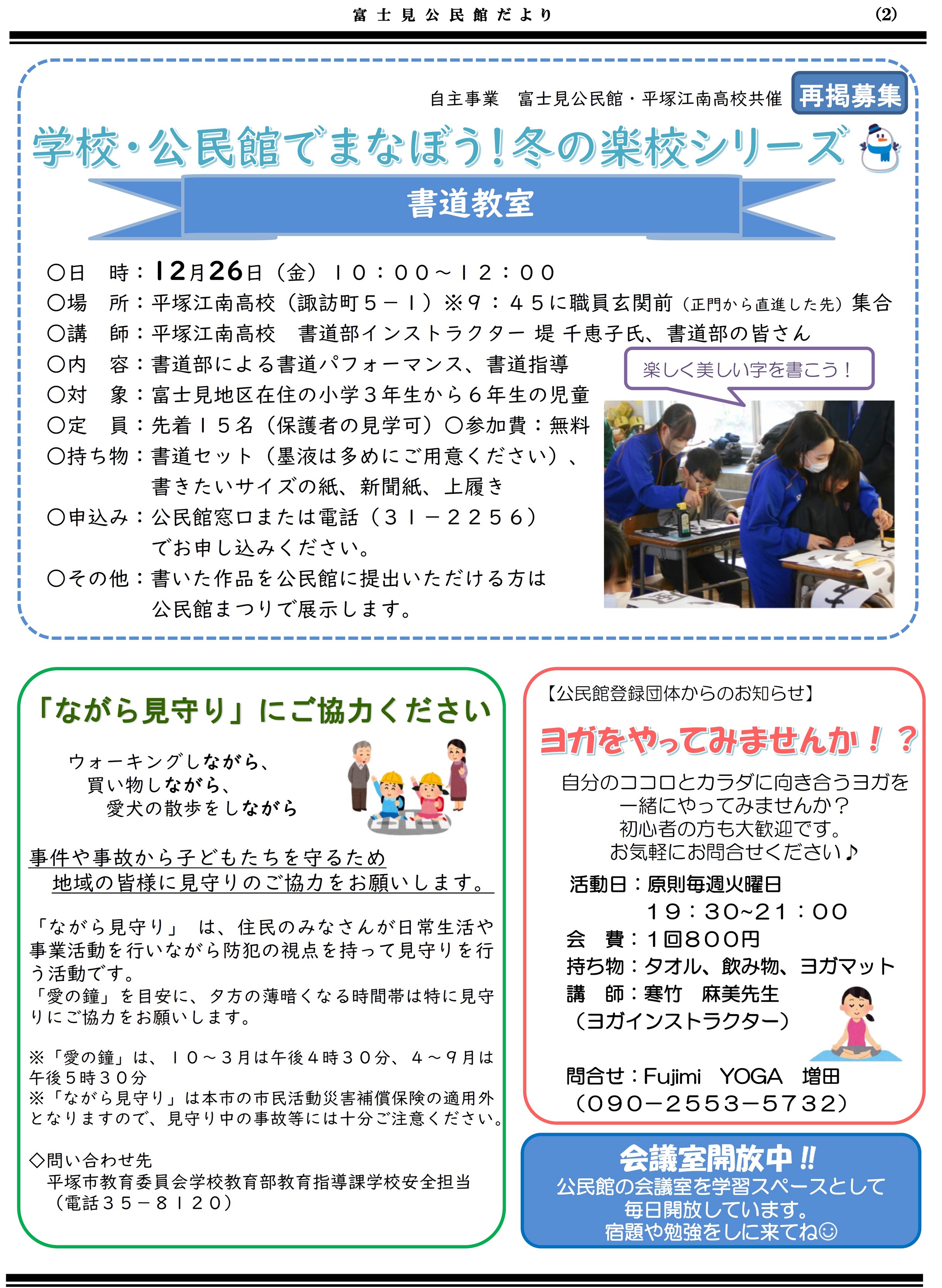 - 2025/12/02 【富士見公民館】公民館だより12月号を発行しました