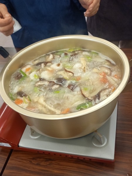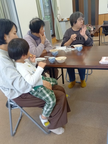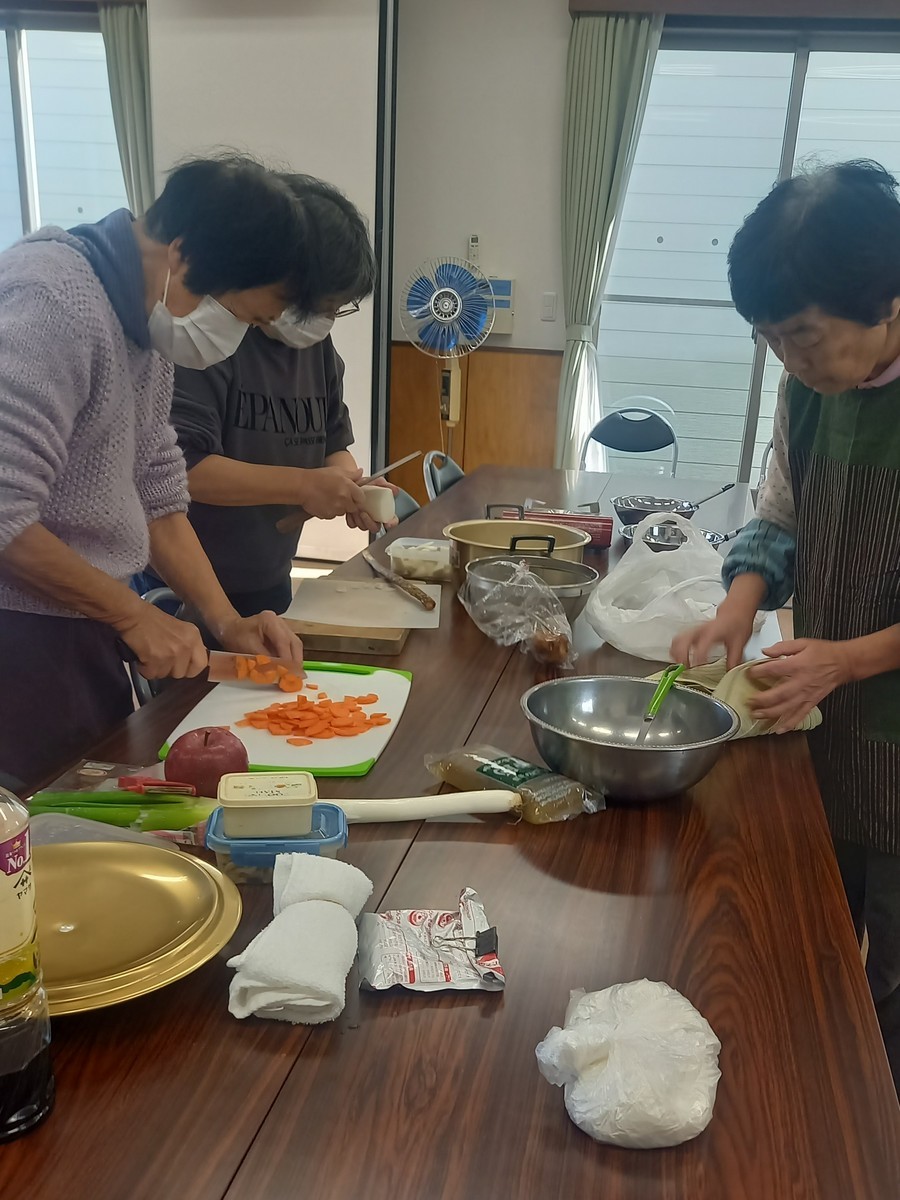 「でこぼこ in 金目(11月)」を開催しました! 11月10日(月)、「でこぼこ in 金目」を開催しました。 今回は「冬野菜で簡単で美味しいものを!」ということで、お家にある根菜野菜(季節のもの)を使って「だんご入りのっぺい汁」を作りました。 だんごは、今回はだんご粉を捏ねて ちぎって 汁に入れて煮込みました。1時間もかからずに出来上がりました。傍で見ながら遊んでいた子もおいしく一緒に食べてくれました。 (Yo.Y.) ※「でこぼこ in 金目」とは 全世代(赤ちゃんからお年寄りまで)のみんなの場です。気軽にご参加ください。 次回は12月8日(月)10時〜 広川自治会館で行います。 |