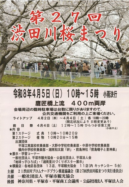 - 2026/03/09 4/5 渋田川 桜まつりが開催されます。