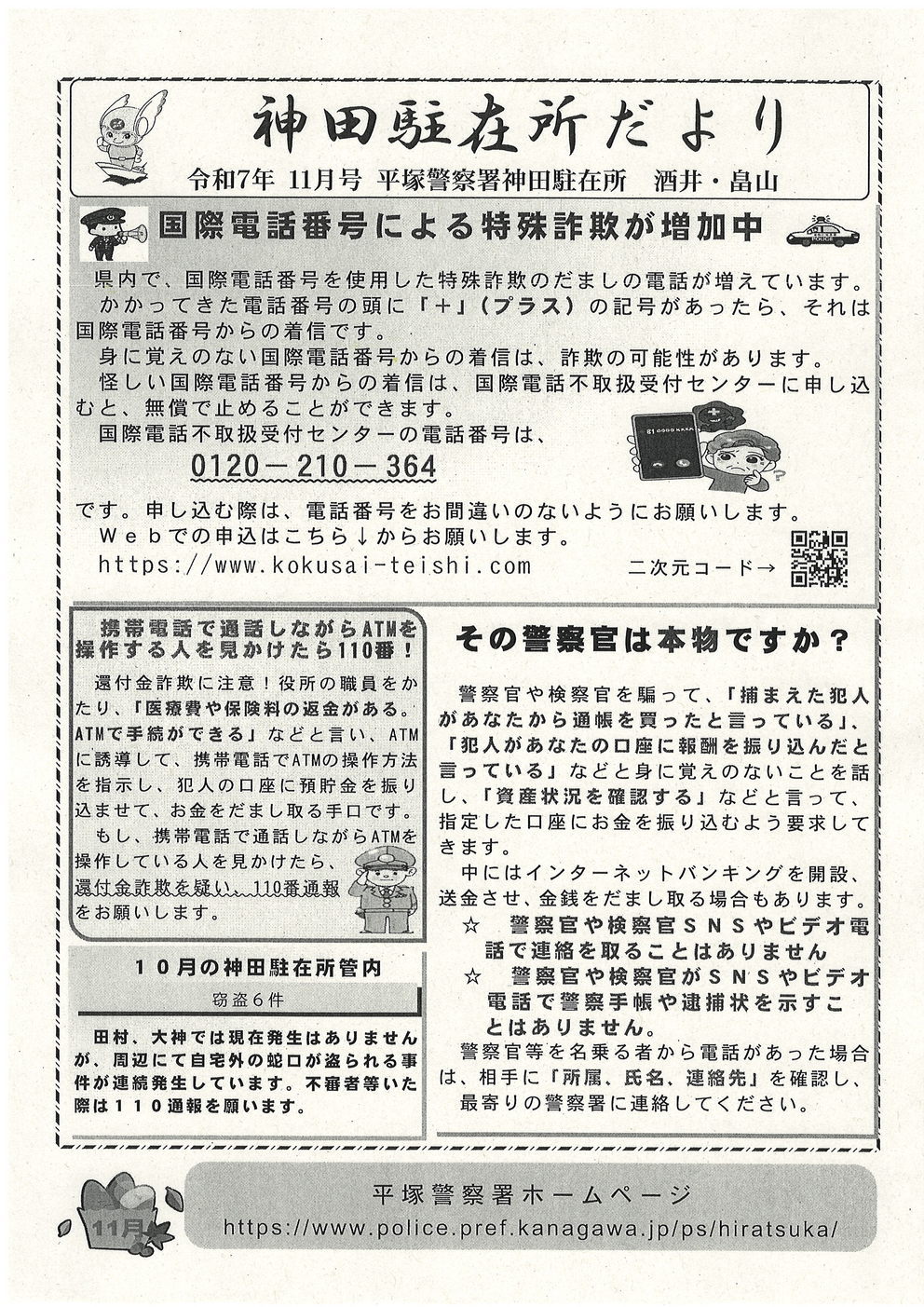 - 2025/11/19 神田駐在所だより 令和7年11月号