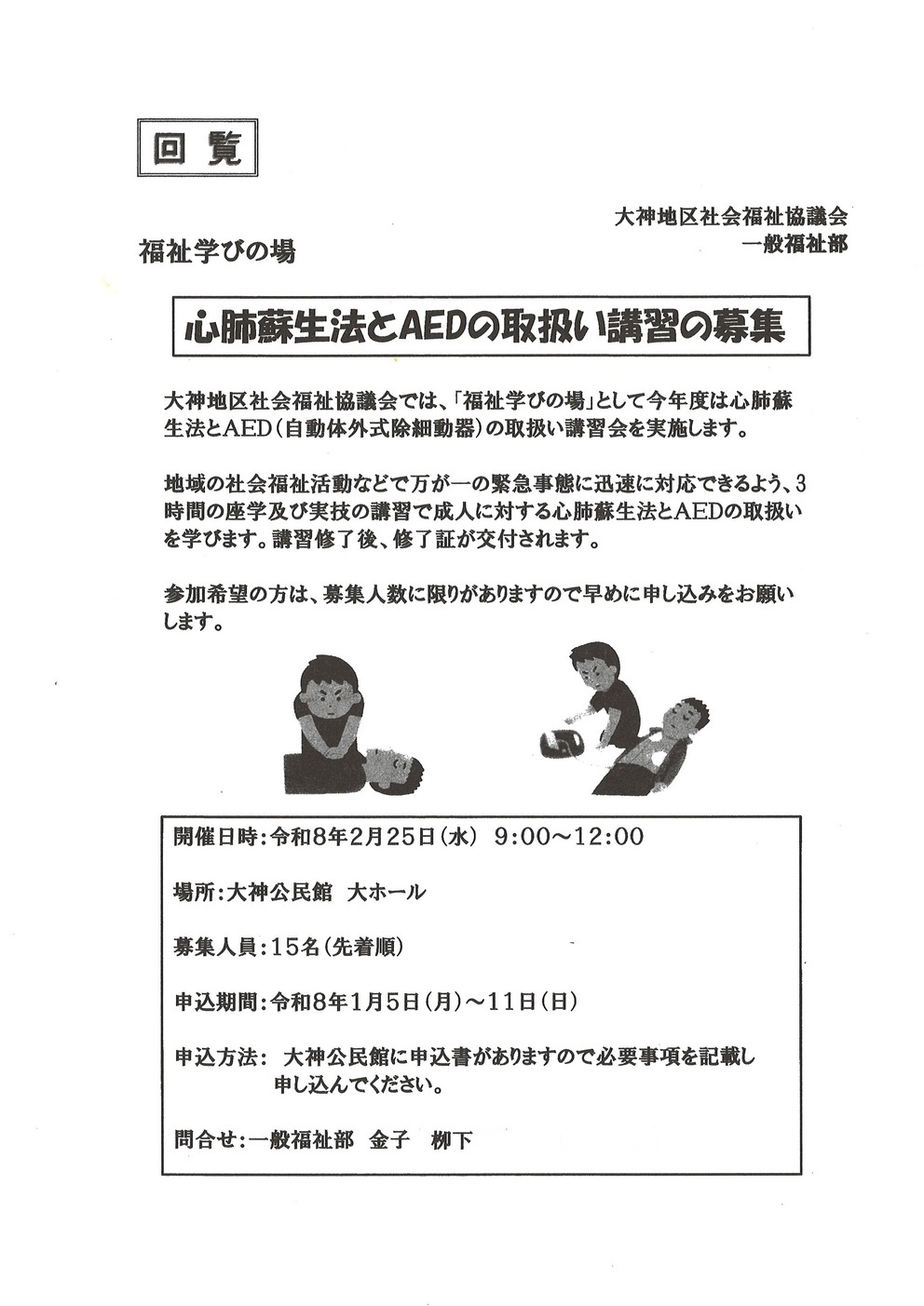- 2025/12/18 心肺蘇生法とAEDの取扱い講習の募集