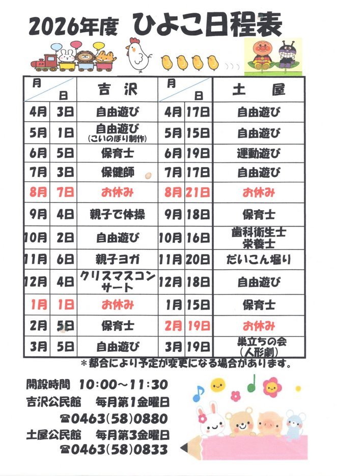 - 2026/04/02 令和8年度 子育てひろば「ひよこ」予定表
